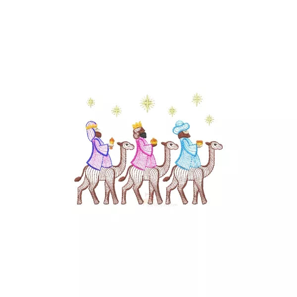 Thème crèche historique - Illustrations de Marie, Joseph, nouveaux-nés, anges, rois mages. (10 designs ondulés) - Motifs de broderie machine de Noël